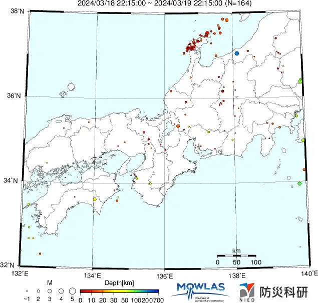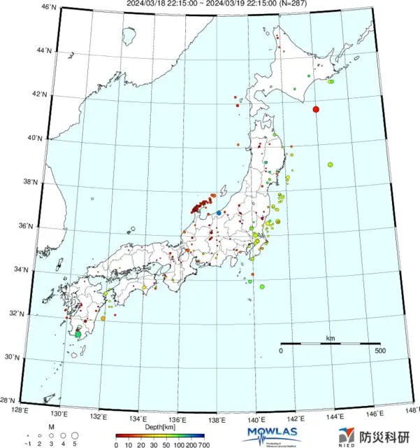 ●Hi-net日本地震分布と気象庁・・・hi-netの小笠原のデータは掲載日がずれて反映されるようです(翌々日に掲載)。掲載されないものもあるようなので気象庁の画像も付けます
