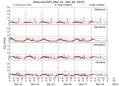 800km/sを超える突風がありましたが徐々に下がり、現在460km/s前後で推移しています