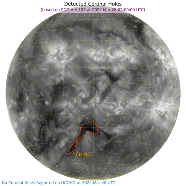南半球(やや高緯度)東寄りにコロナホールがあります
