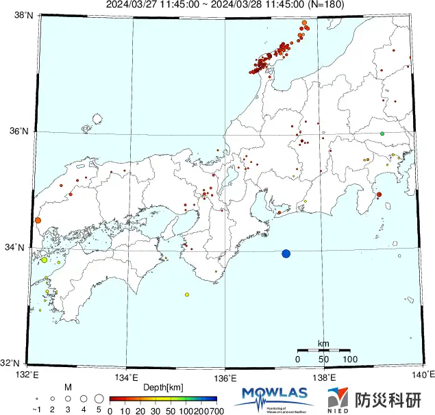 ●Hi-net日本地震分布と気象庁・・・hi-netの小笠原のデータは掲載日がずれて反映されるようです(翌々日に掲載)。掲載されないものもあるようなので気象庁の画像も付けます