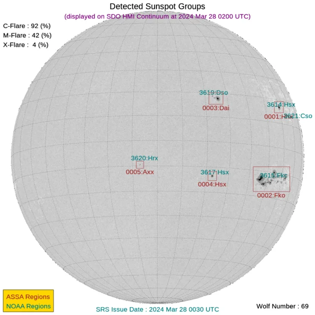 太陽フレアと黒点数(2024年03月28日更新)※中規模太陽フレア&CME到着予測あり