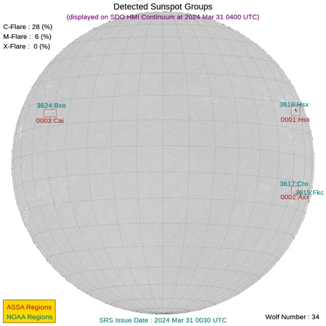 太陽フレアと黒点数(2024年03月31日更新)※大き目中規模太陽フレア(LDE)