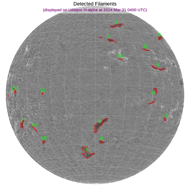 北半球西側を中心に、南半球中心付近・東端・西側にもフィラメントがあります