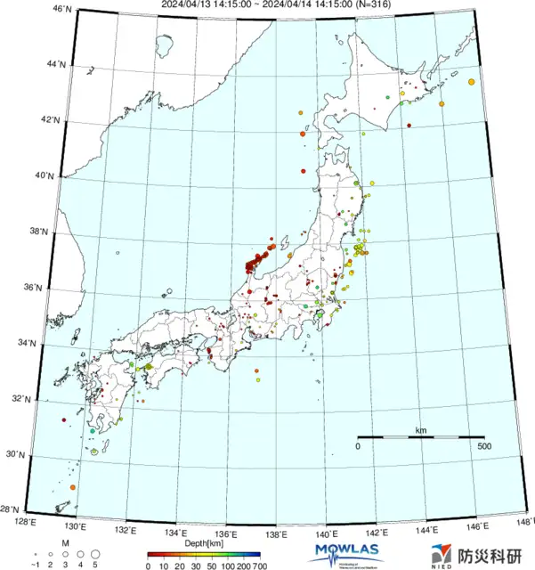 ●Hi-net日本地震分布と気象庁・・・hi-netの小笠原のデータは掲載日がずれて反映されるようです(翌々日に掲載)。掲載されないものもあるようなので気象庁の画像も付けます