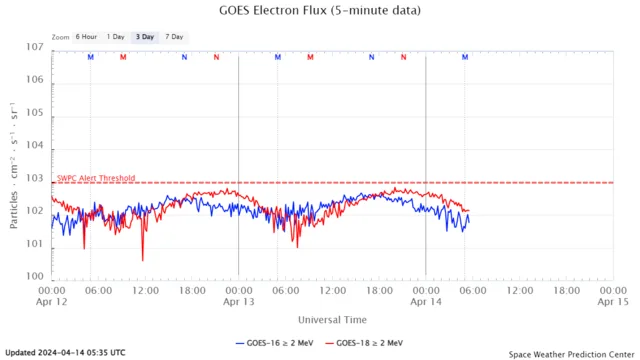 太陽フレアと黒点数(2024年04月14日更新)※中規模太陽フレア&CME到着予測あり