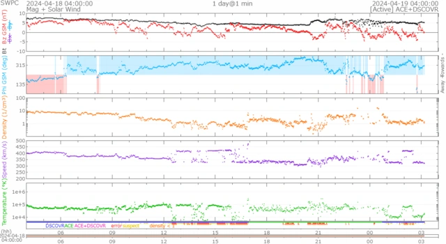 一時420km/s前後で推移しましたが、現在320km/s前後で推移しています