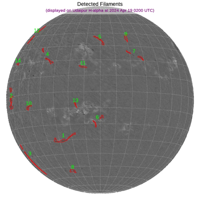 東側を中心にフィラメントが散在していて、北半球西寄りにもフィラメントがあります