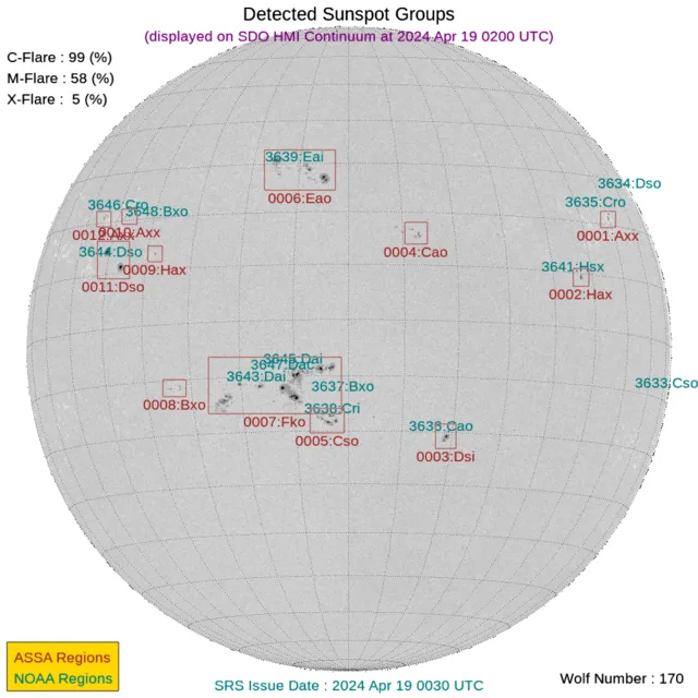 太陽フレアと黒点数(2024年04月19日更新)※中規模太陽フレア&CME到着予測あり