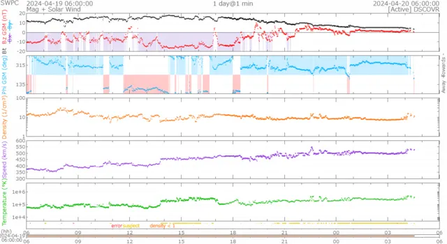 320km/s前後で推移していましたが徐々に上がり、現在520km/s前後で推移しています