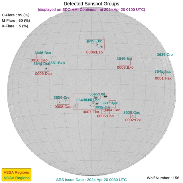 現時点で地球正面の黒点群は[3637, 3638, 3639, 3643, 3645, 3649, 3650]です。←黒点番号が振られていない活動領域でもフレアは発生しますので、あくまで目安として捉えてください。