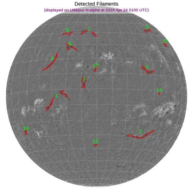 北半球中心~東側・西側~西端、南半球西側、東側にフィラメントがあります
