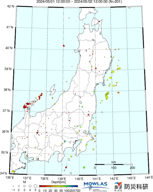 ●Hi-net日本地震分布と気象庁・・・hi-netの小笠原のデータは掲載日がずれて反映されるようです(翌々日に掲載)。掲載されないものもあるようなので気象庁の画像も付けます