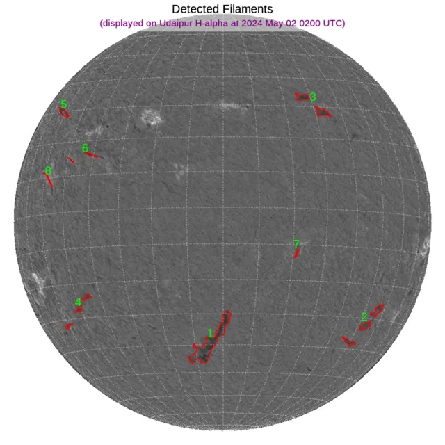 南半球西側・東寄り、北半球西側・東端にフィラメントがあります