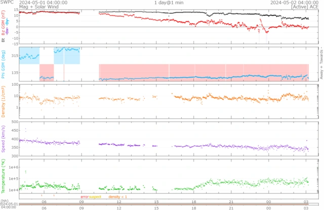 400km/s前後で推移していましたが徐々に下がり、現在340km/s前後で推移しています