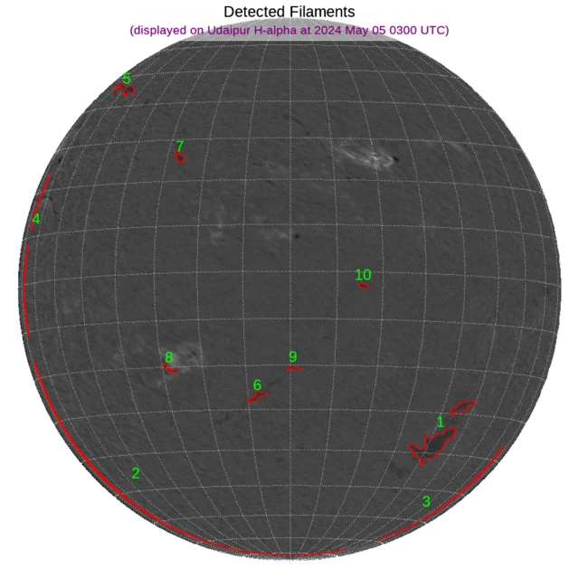 南半球西側・中央~東側と北半球東側にフィラメントがあります