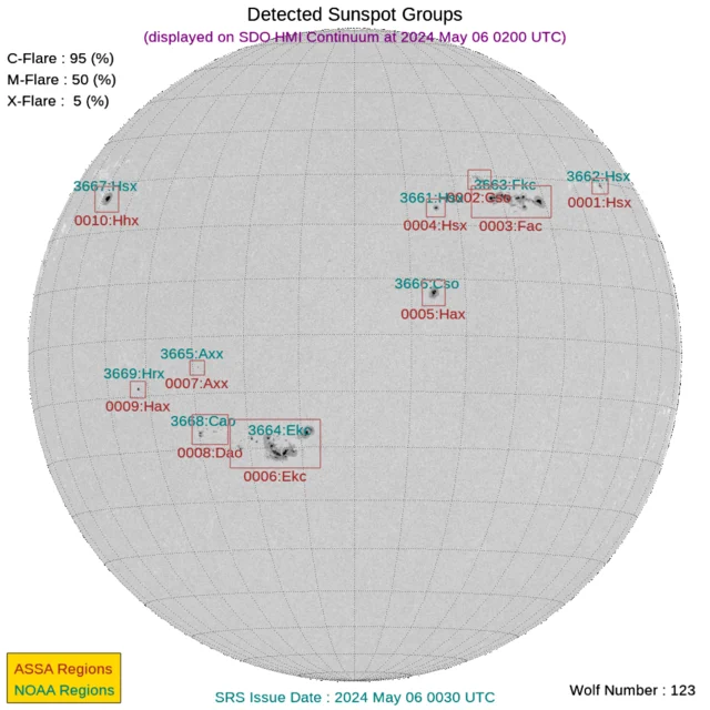 太陽フレアと黒点数(2024年05月06日更新)※大規模2発×中規模多発&CME到着予測あり