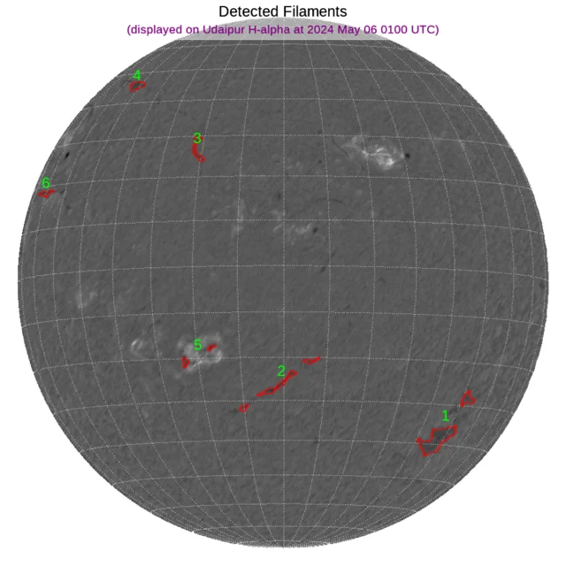 南半球西端・中央付近~東寄りと北半球東側にフィラメントがあります