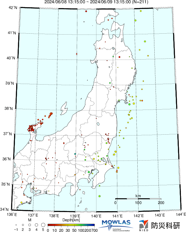 ●Hi-net日本地震分布と気象庁・・・hi-netの小笠原のデータは掲載日がずれて反映されるようです(翌々日に掲載)。掲載されないものもあるようなので気象庁の画像も付けます