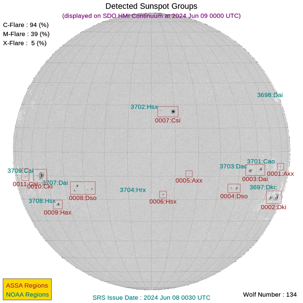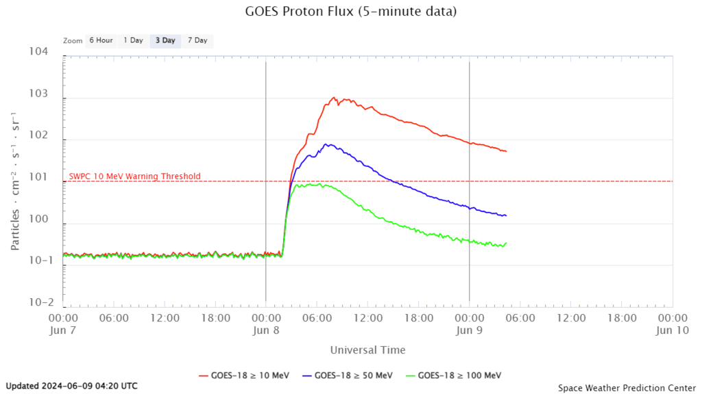 太陽フレアと黒点数(2024年06月09日更新)※中規模太陽フレア&LDE&FullHalo型CME&CME到着予測あり