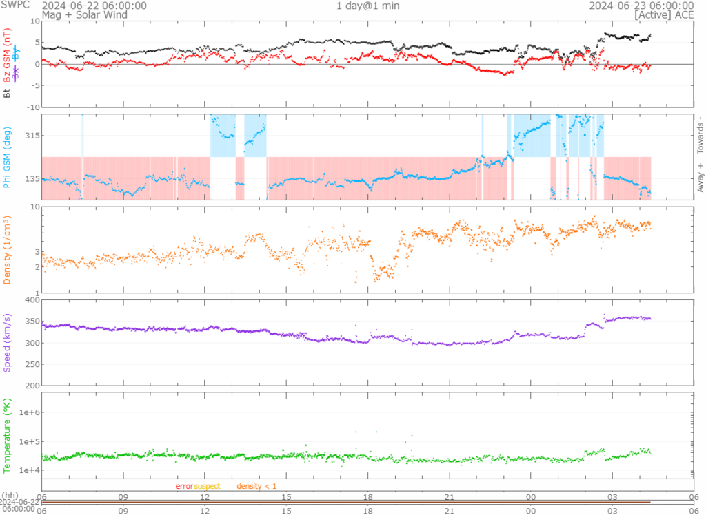 一時300km/s前後まで下がりましたが、徐々に上がり現在360km/s前後で推移しています