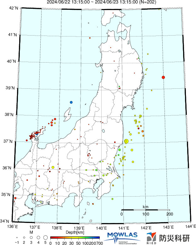 ●Hi-net日本地震分布と気象庁・・・hi-netの小笠原のデータは掲載日がずれて反映されるようです(翌々日に掲載)。掲載されないものもあるようなので気象庁の画像も付けます