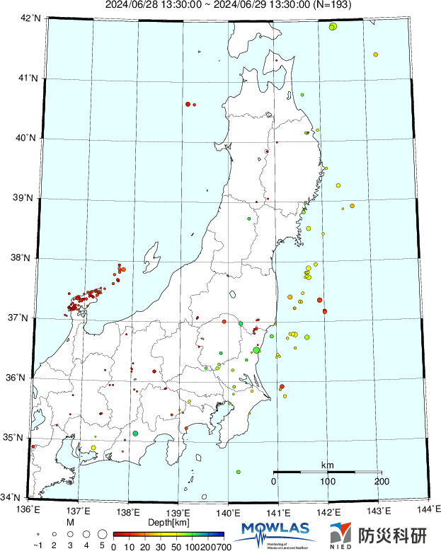 ●Hi-net日本地震分布と気象庁・・・hi-netの小笠原のデータは掲載日がずれて反映されるようです(翌々日に掲載)。掲載されないものもあるようなので気象庁の画像も付けます