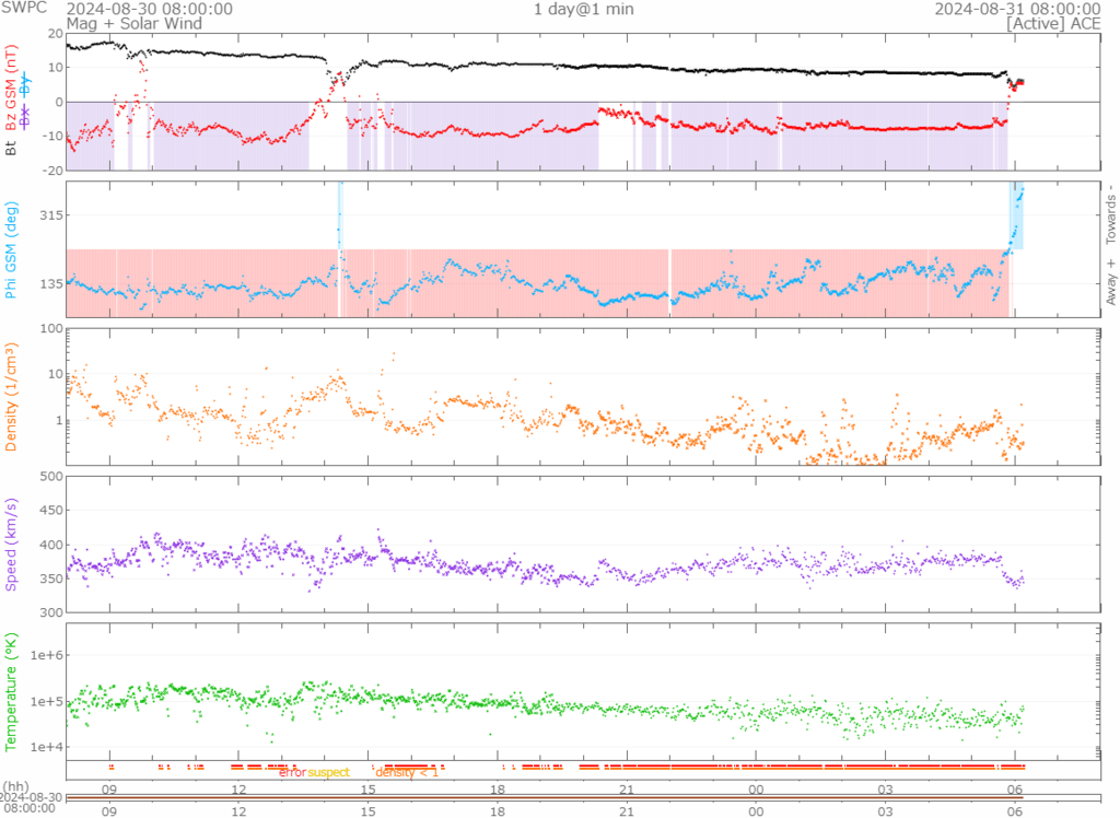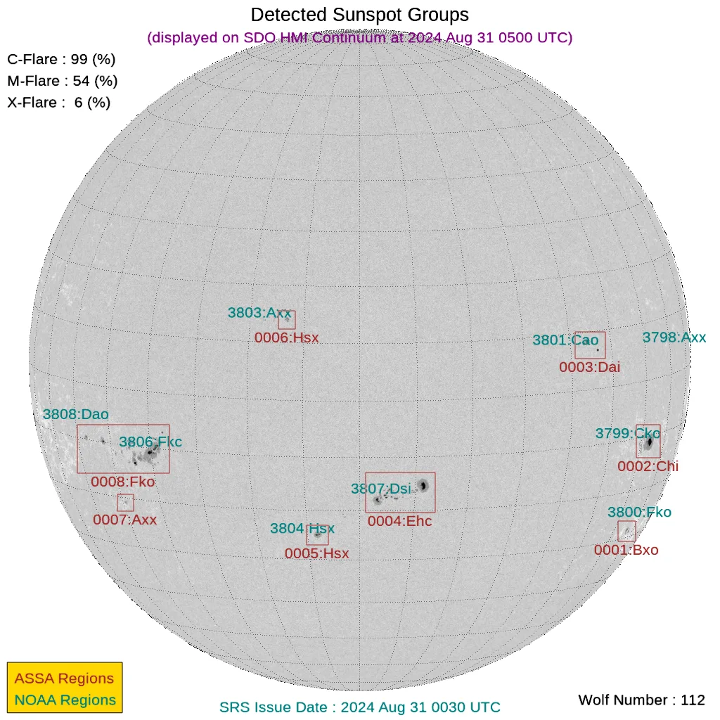 太陽フレアと黒点数(2024年08月31日更新)※中規模数回&磁気嵐発生中