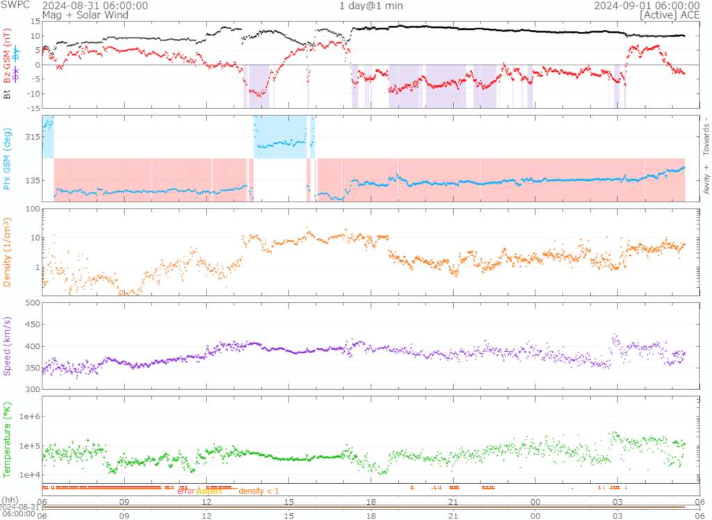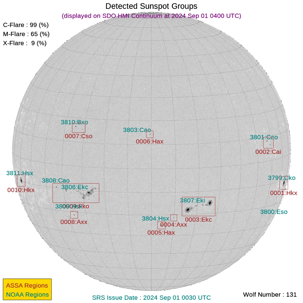 太陽フレアと黒点数(2024年09月01日更新)※中規模&磁気嵐継続中