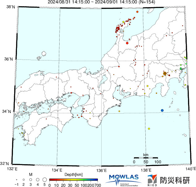 ●Hi-net日本地震分布と気象庁・・・hi-netの小笠原のデータは掲載日がずれて反映されるようです(翌々日に掲載)。掲載されないものもあるようなので気象庁の画像も付けます