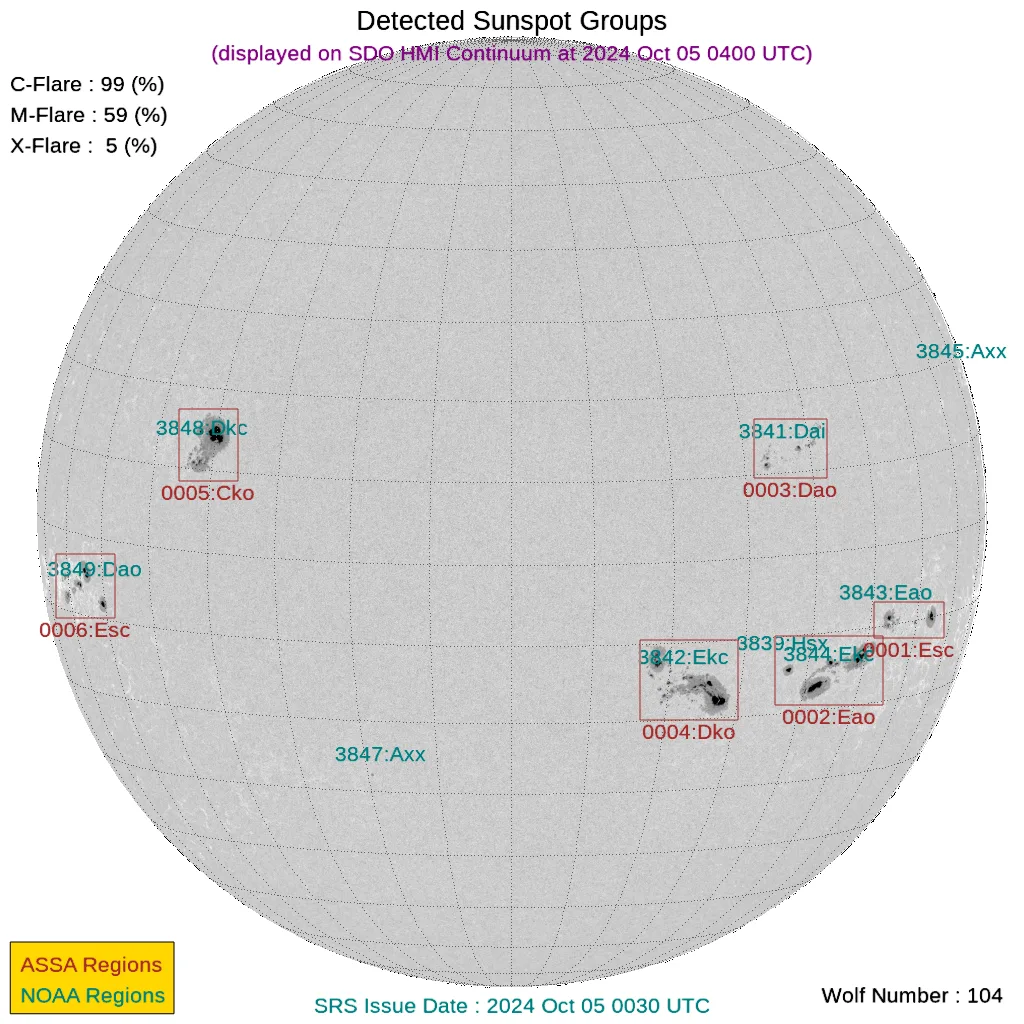 現時点で地球正面の黒点群は[3842, 3847]です。←黒点番号が振られていない活動領域でもフレアは発生しますので、あくまで目安として捉えてください。
