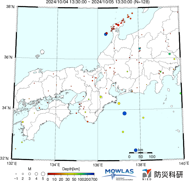 ●Hi-net日本地震分布と気象庁・・・hi-netの小笠原のデータは掲載日がずれて反映されるようです(翌々日に掲載)。掲載されないものもあるようなので気象庁の画像も付けます
