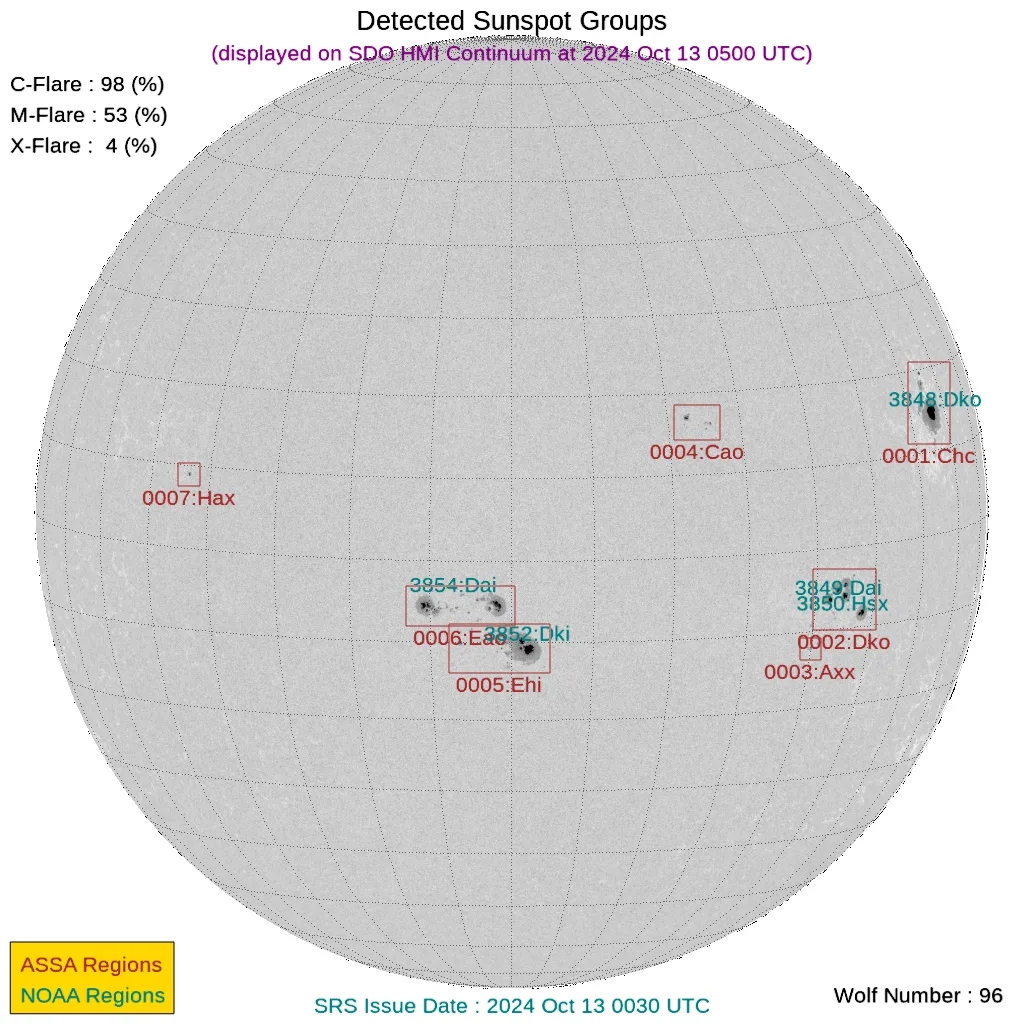 現時点で地球正面の黒点群は[3852, 3854]です。←黒点番号が振られていない活動領域でもフレアは発生しますので、あくまで目安として捉えてください。