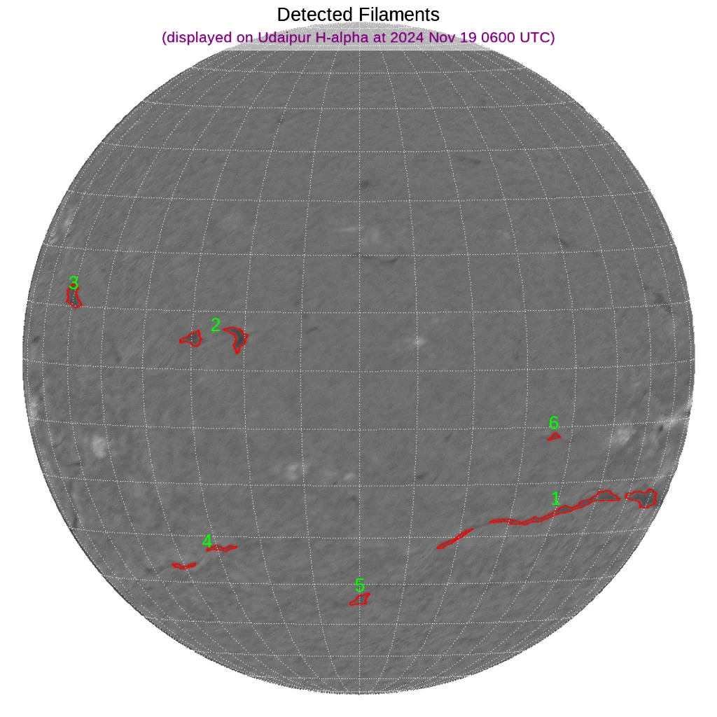 南半球西側に、西端から西よりにかけて伸びる長いフィラメントがあります。
