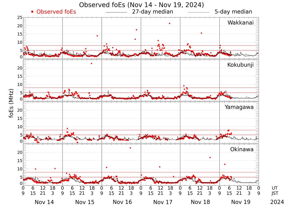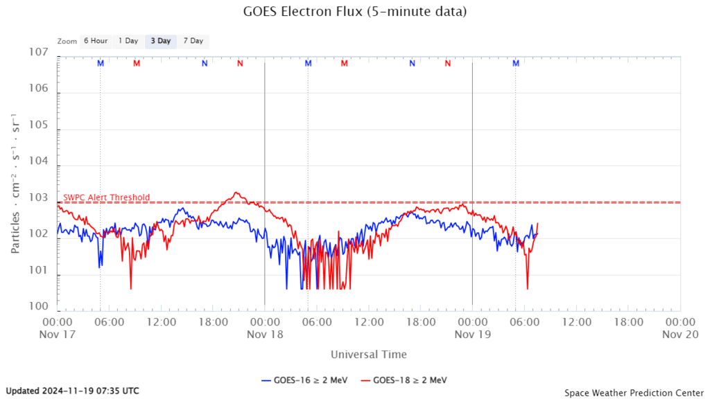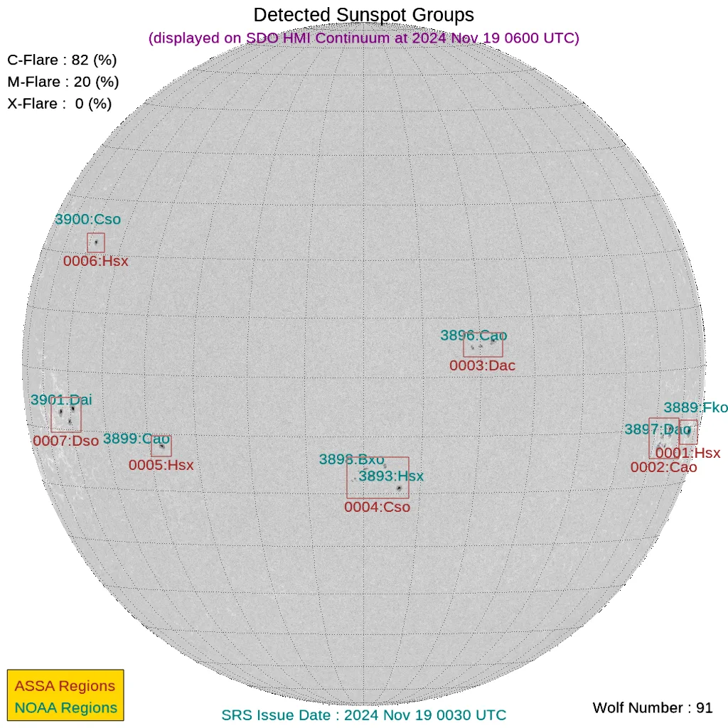 太陽フレアと黒点数(2024年11月19日更新)※中規模多発(一部LDEフレア)