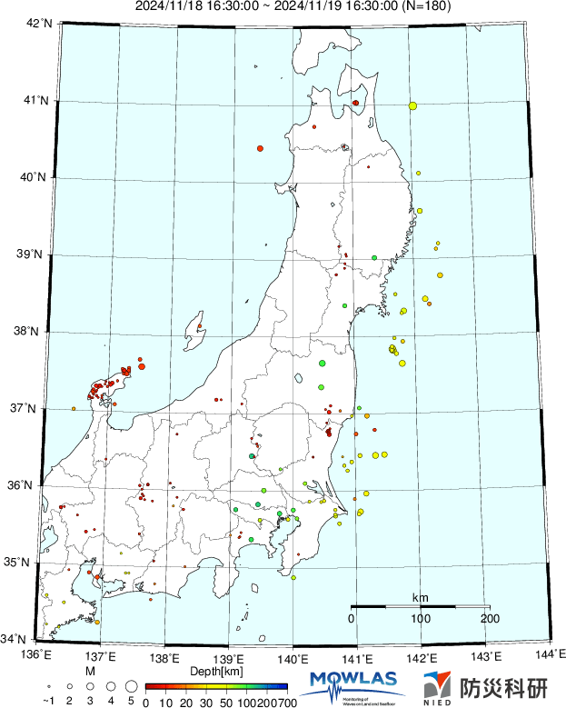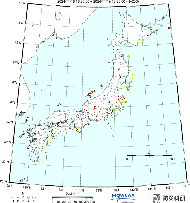 ●Hi-net日本地震分布と気象庁・・・hi-netの小笠原のデータは掲載日がずれて反映されるようです(翌々日に掲載)。掲載されないものもあるようなので気象庁の画像も付けます
