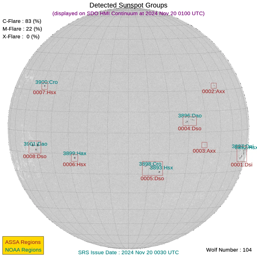 現時点で地球正面の黒点群は[3893, 3898]です。←黒点番号が振られていない活動領域でもフレアは発生しますので、あくまで目安として捉えてください。