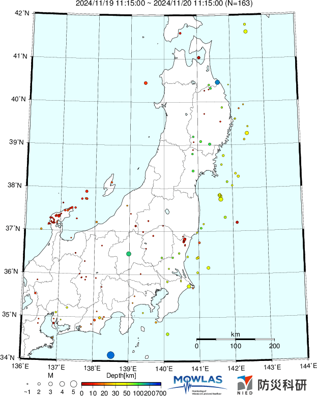 ●Hi-net日本地震分布と気象庁・・・hi-netの小笠原のデータは掲載日がずれて反映されるようです(翌々日に掲載)。掲載されないものもあるようなので気象庁の画像も付けます