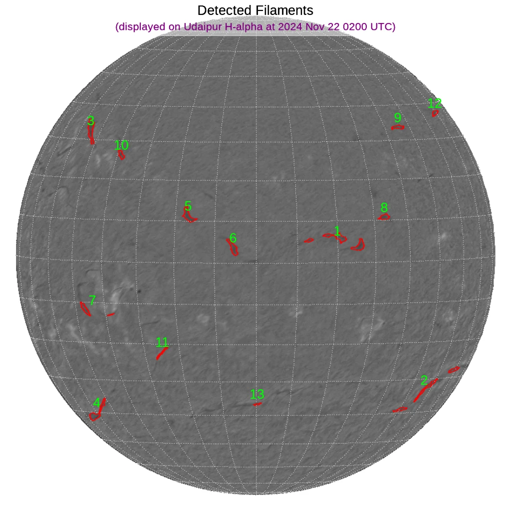 北半球中緯度帯~南半球中緯度帯にフィラメントが散在しています