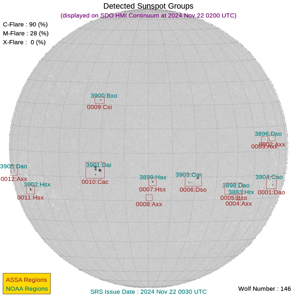 現時点で地球正面の黒点群は[3899, 3900, 3901, 3903]です。←黒点番号が振られていない活動領域でもフレアは発生しますので、あくまで目安として捉えてください。