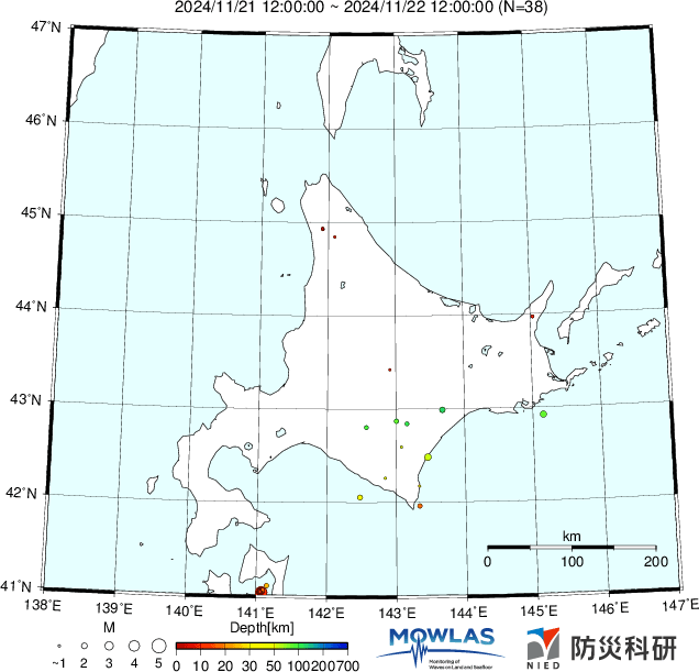 ●Hi-net日本地震分布と気象庁・・・hi-netの小笠原のデータは掲載日がずれて反映されるようです(翌々日に掲載)。掲載されないものもあるようなので気象庁の画像も付けます
