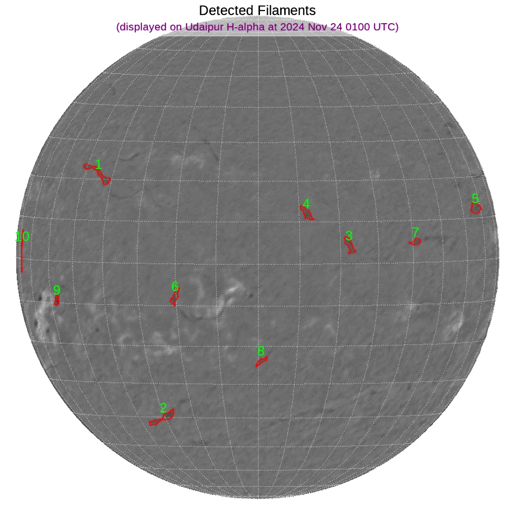 北半球寄りの赤道付近と、南半球東側にフィラメントがあります