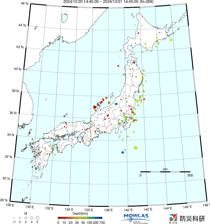 ●Hi-net日本地震分布と気象庁・・・hi-netの小笠原のデータは掲載日がずれて反映されるようです(翌々日に掲載)。掲載されないものもあるようなので気象庁の画像も付けます