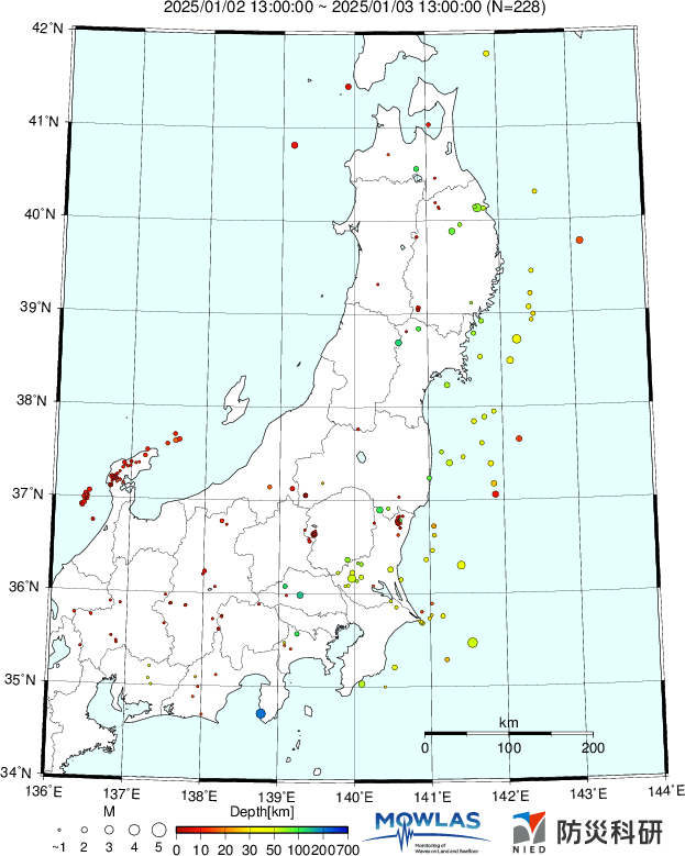 ●Hi-net日本地震分布と気象庁・・・hi-netの小笠原のデータは掲載日がずれて反映されるようです(翌々日に掲載)。掲載されないものもあるようなので気象庁の画像も付けます