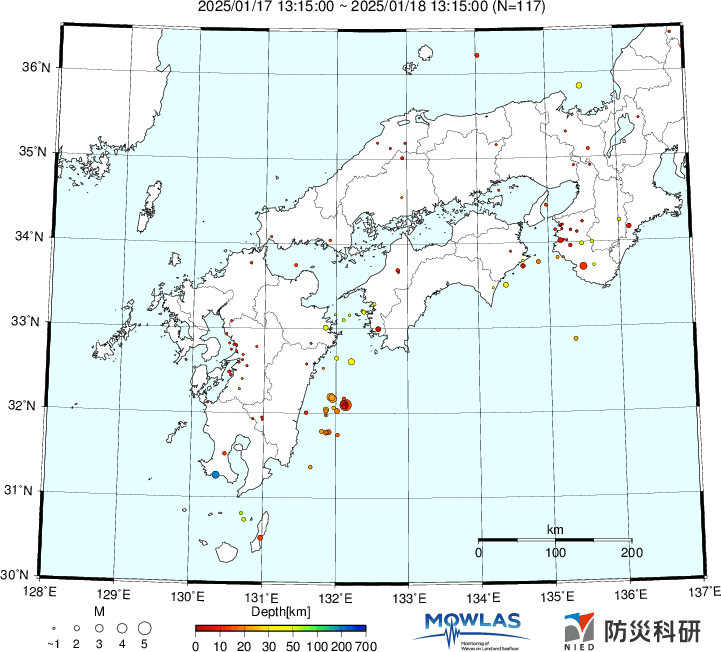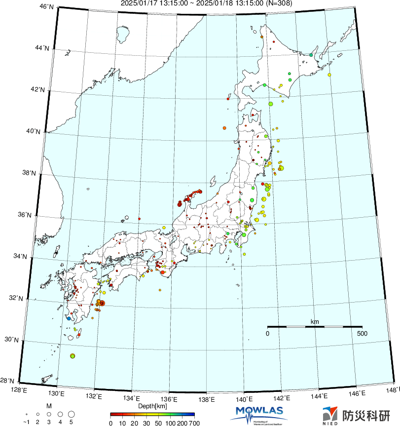 ●Hi-net日本地震分布と気象庁・・・hi-netの小笠原のデータは掲載日がずれて反映されるようです(翌々日に掲載)。掲載されないものもあるようなので気象庁の画像も付けます