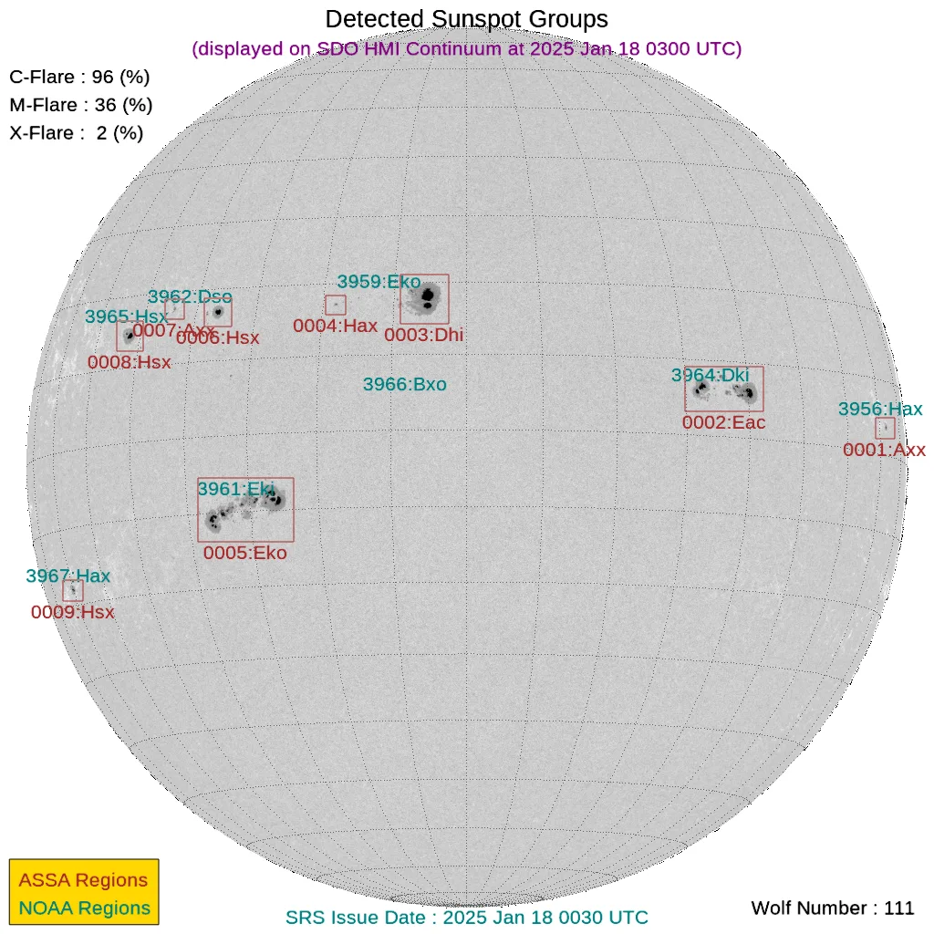 現時点で地球正面の黒点群は[3959, 3966]です。←黒点番号が振られていない活動領域でもフレアは発生しますので、あくまで目安として捉えてください。