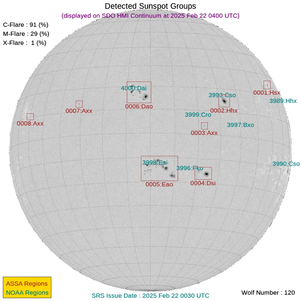 太陽フレアと黒点数(2025年02月22日更新)※中規模太陽フレア&CME到着予測あり
