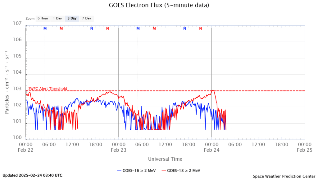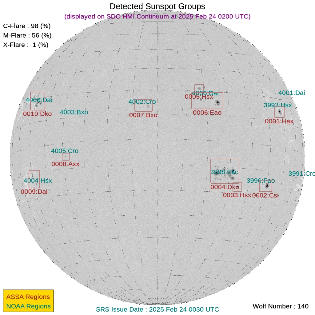 太陽フレアと黒点数(2025年02月24日更新)※大規模太陽フレア&CME到着予測あり