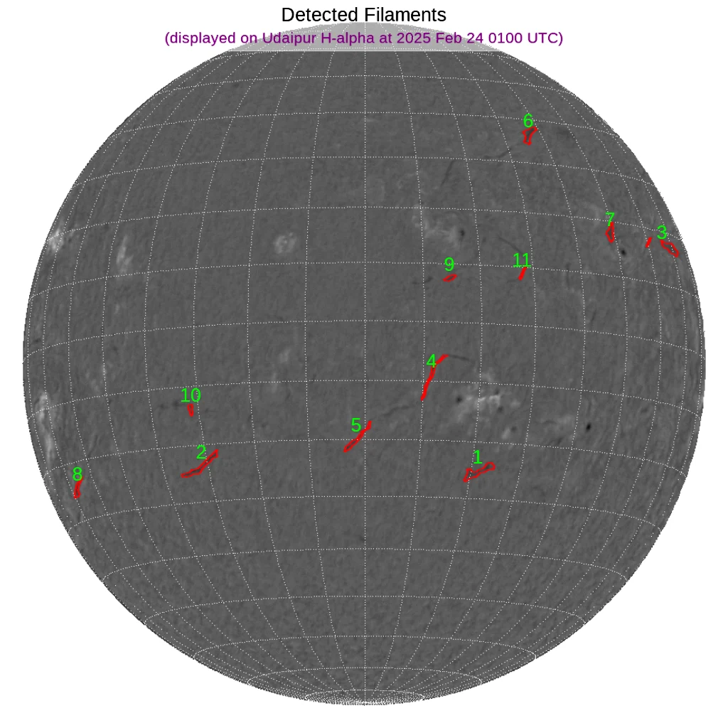 北半球西側と赤道付近よりやや南の領域にフィラメントがあります