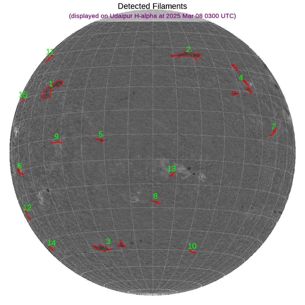 北半球西より~西側・東端と、南半球西より~東端にフィラメントが散在しています