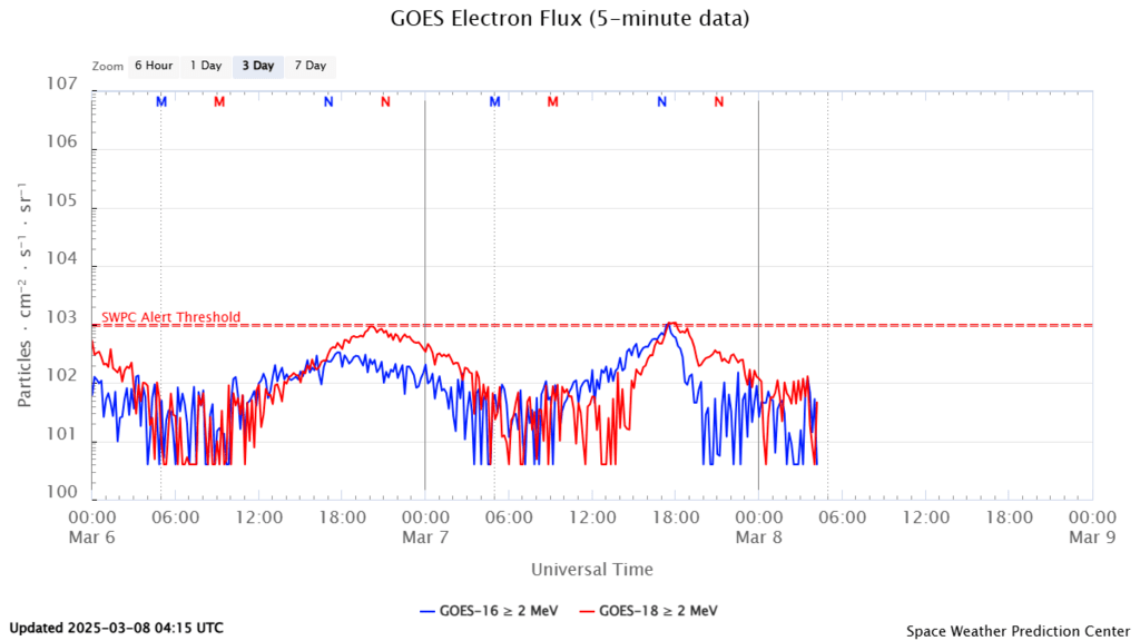 太陽フレアと黒点数(2025年03月08日更新)※中規模太陽フレア